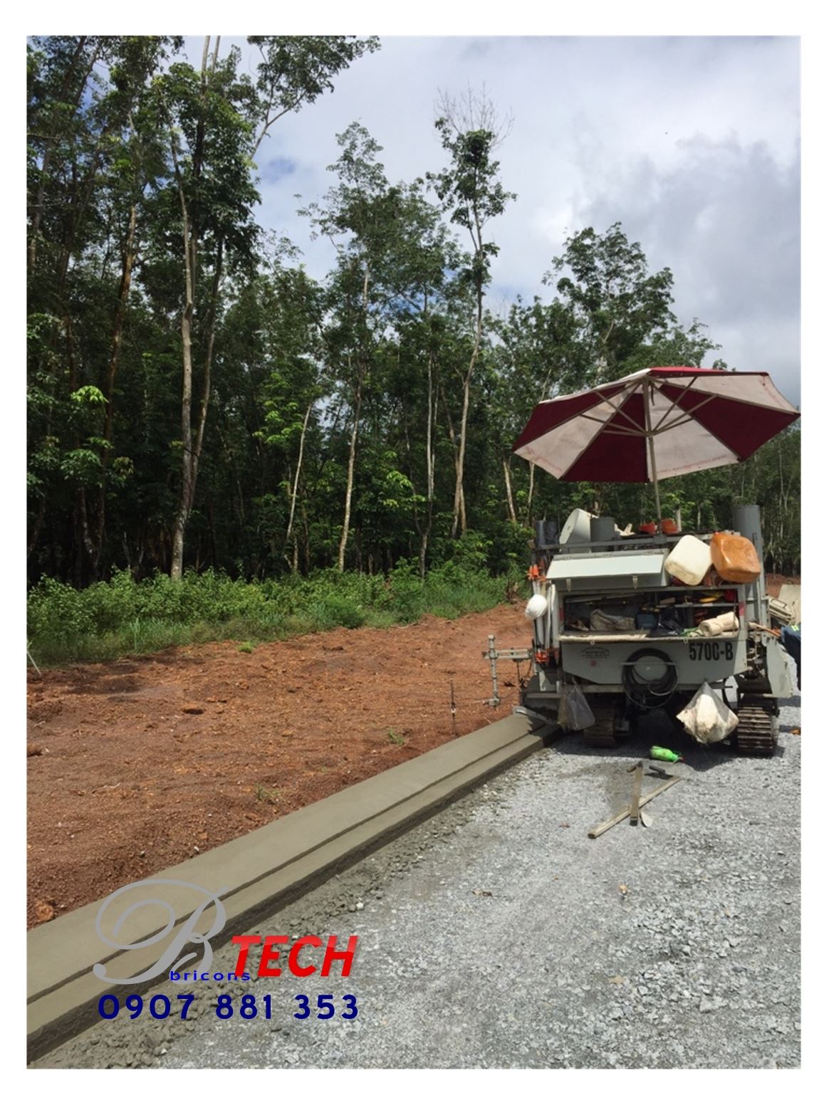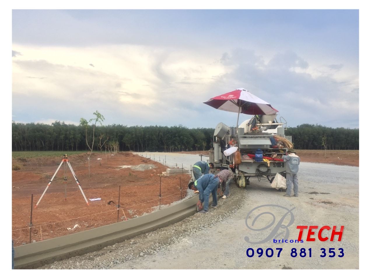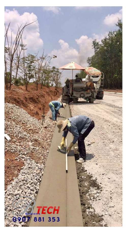 Công ty Cổ phần Công nghệ – Xây dựng Nguyên Cát thi công bó vỉa bằng máy tạo hình bó vỉa tự động Power Cuber 5700 Super B tại Khu công nghiệp Đồng Xoài – Binh Phước.