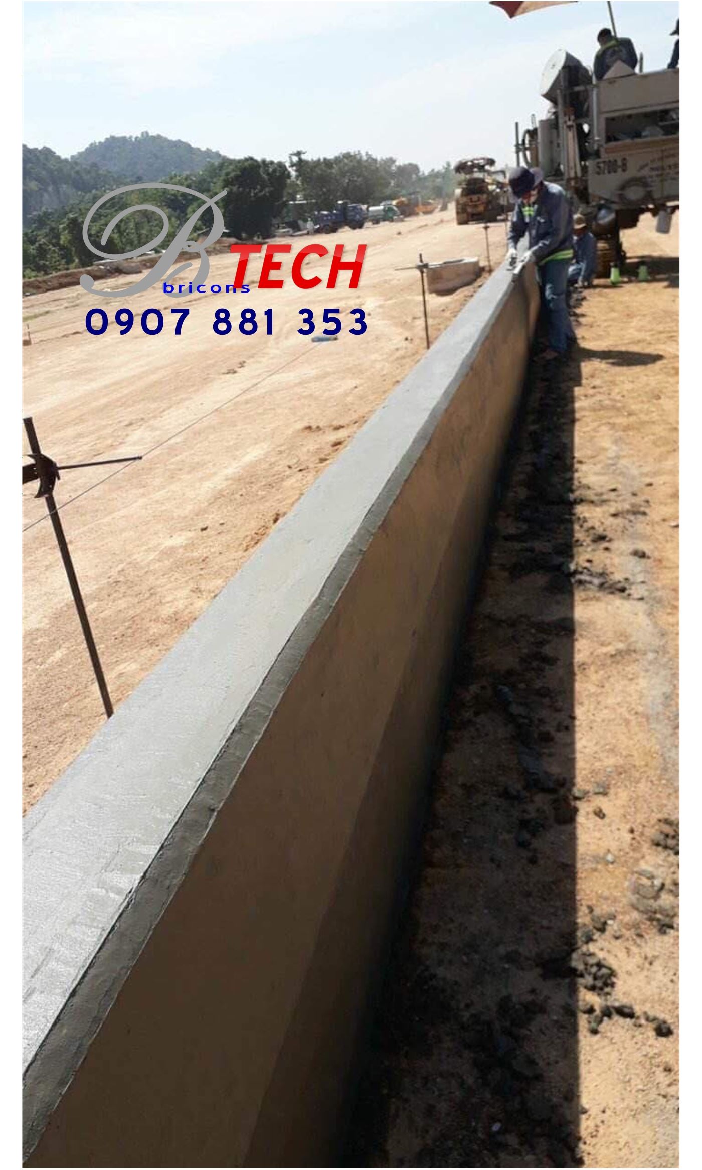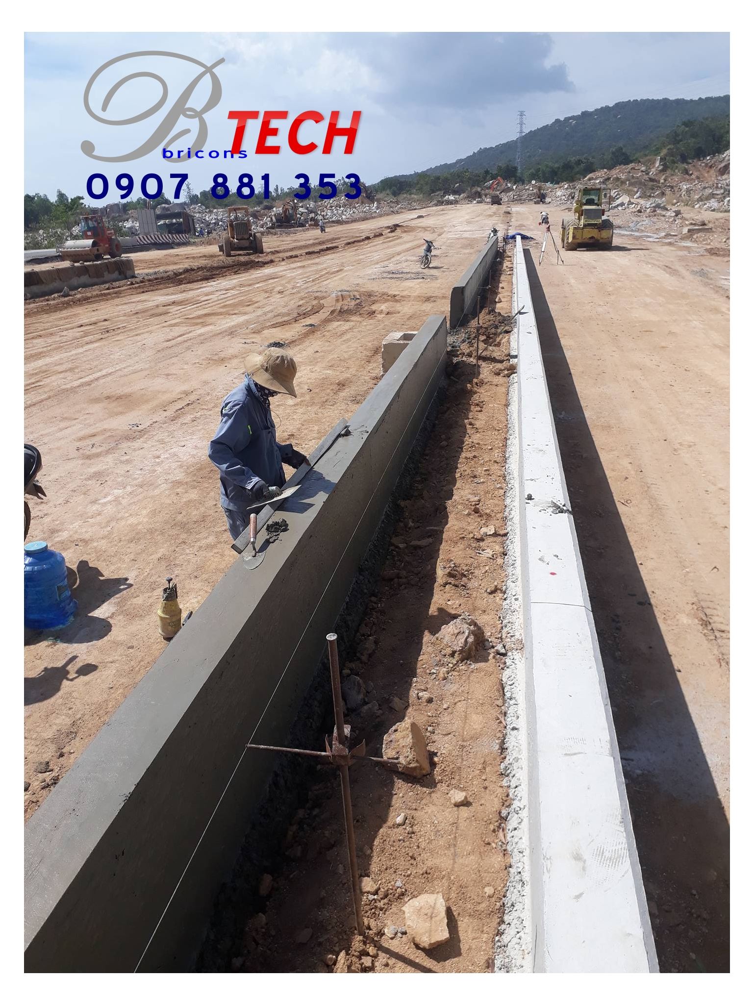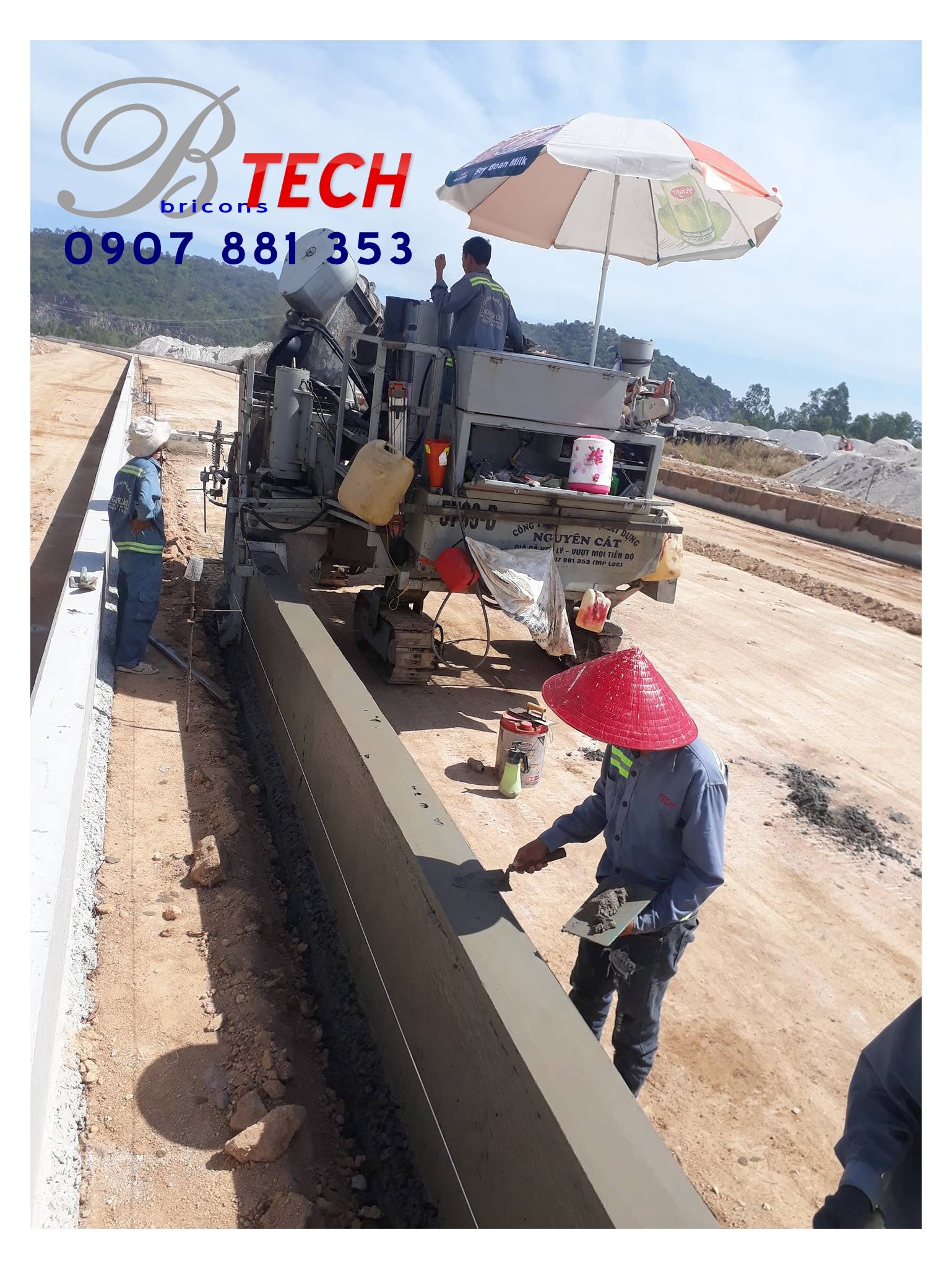 Công ty Cổ phần Công nghệ – Xây dựng Nguyên Cát thi công bó vỉa, đổ bê tông dải phân cách bằng máy tạo hình bó vỉa tự động Power Cuber 5700 Super-B tại Dự án Đường tránh Quốc lộ 56B.