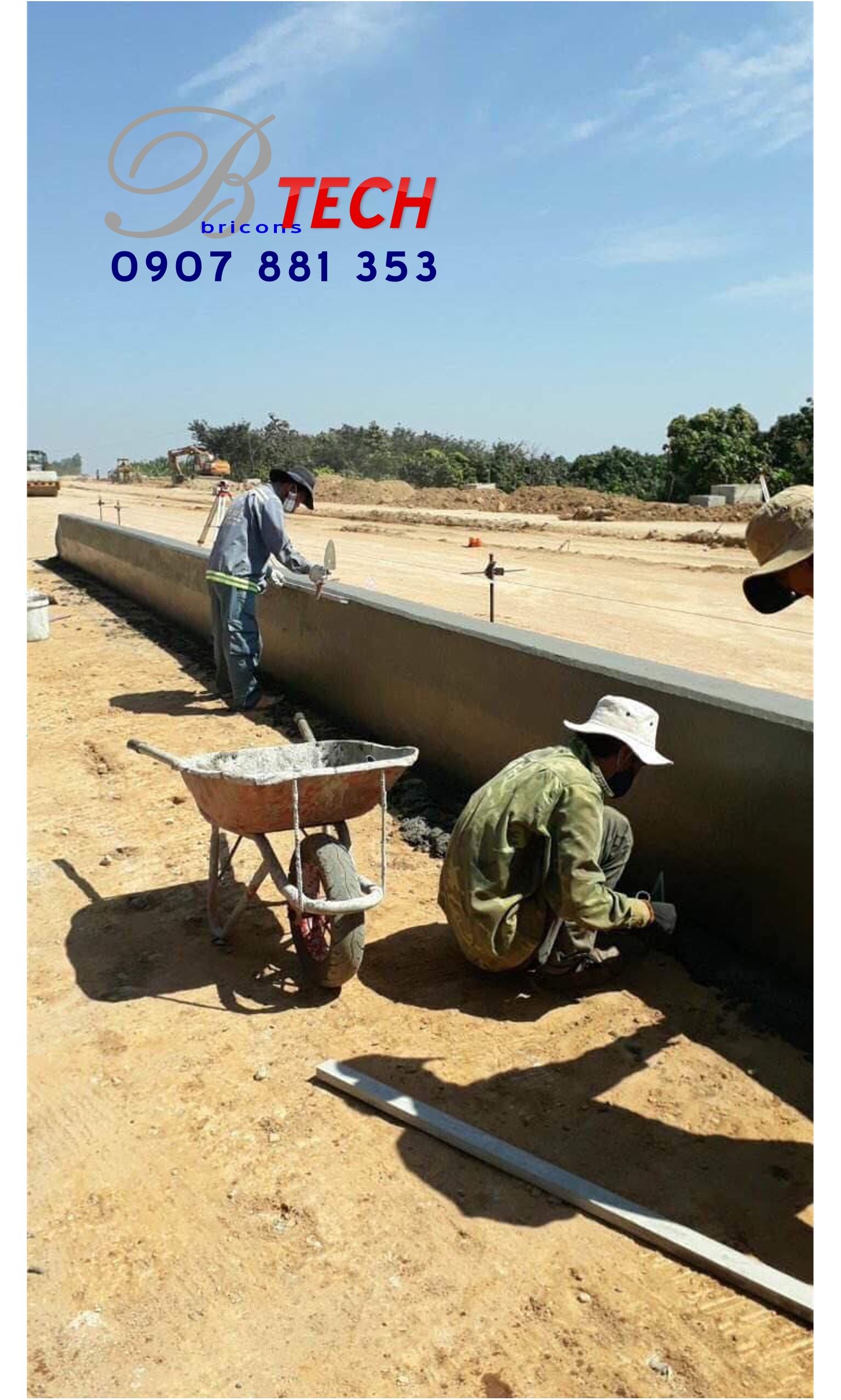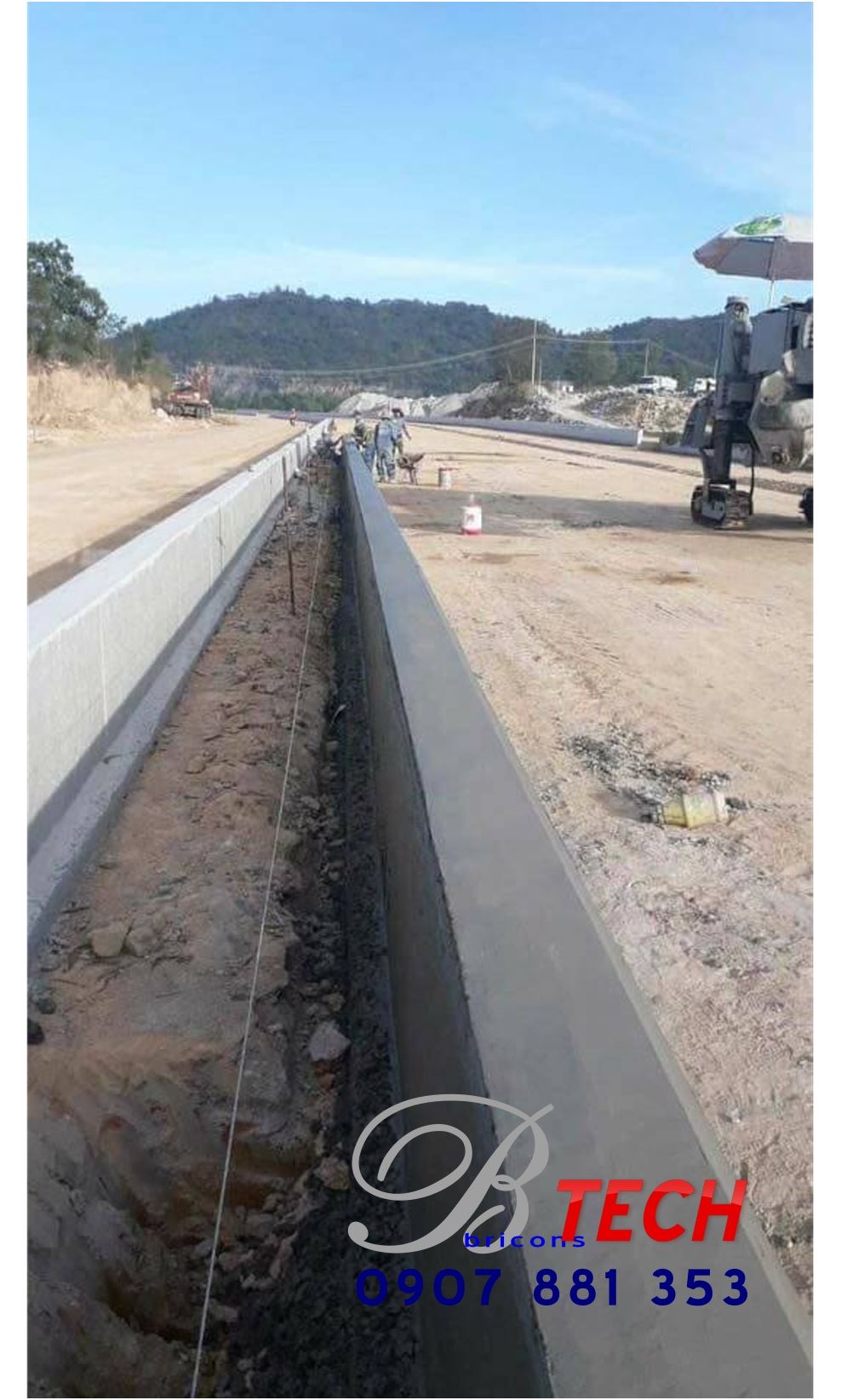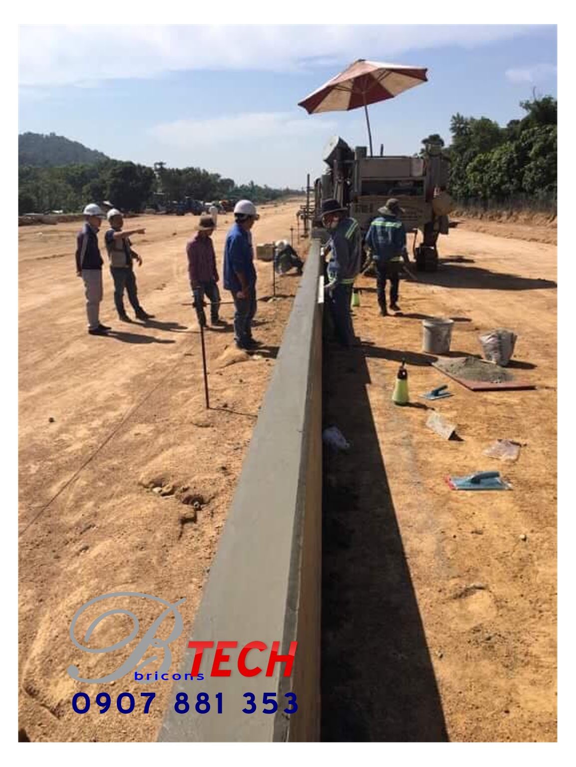Công ty Cổ phần Công nghệ – Xây dựng Nguyên Cát thi công bó vỉa, đổ bê tông dải phân cách bằng máy tạo hình bó vỉa tự động Power Cuber 5700 Super-B tại Dự án Đường tránh Quốc lộ 56B.