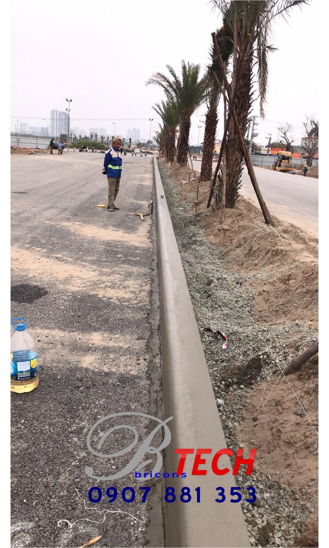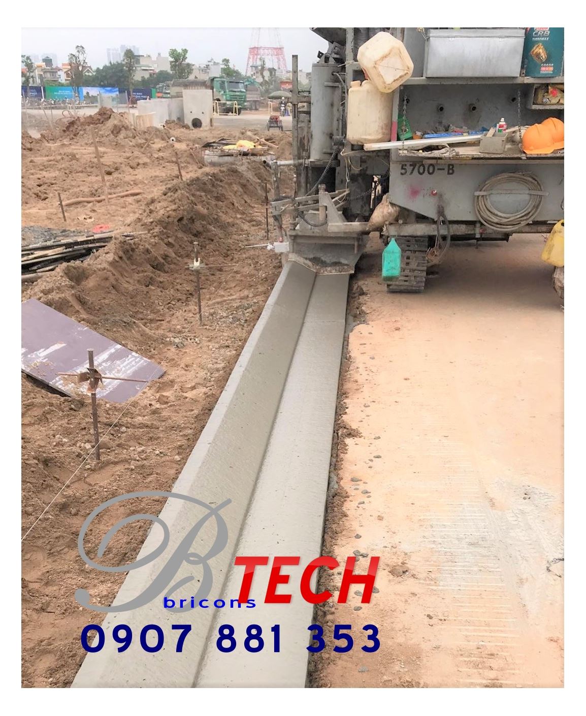 Công ty Cổ phần Công nghệ – Xây dựng Nguyên Cát thi công bó vỉa bằng máy tạo hình bó vỉa tự động Power Cuber 5700 Super-B tại Dự án Vinhome Smart City Tây Mỗ, Hà Nội.